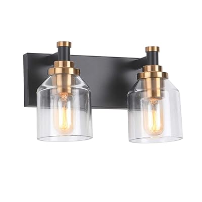 Buy Wildsoul 40062bk 2 Light Bathroom Vanity Light Fixtures Modern Farmhouse Rustic Wood Glass Bath Mirror Lighting Wall Sconce Handblown Dome Clear Seeded Glass Matte Black And Brass Finish 15 Width Online In from images-na.ssl-images-amazon.com Matte black and brass vanity light. Maybe you would like to learn more about one of these? Check spelling or type a new query. We did not find results for: